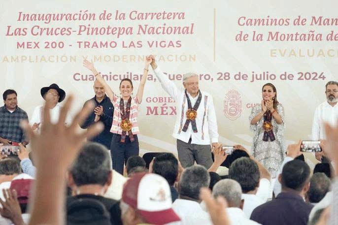 El presidente López Obrador viaja con la doctora Claudia Sheinbaum Pardo. En su recorrido, un grupo de campesinos detuvo unos montos el convoy presidencial para pedirles que les construyan una carretera para su comunidad.
