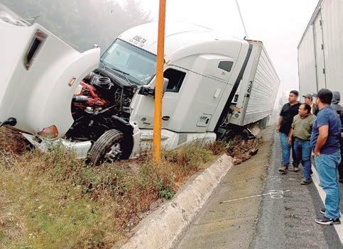 En el percance se vieron involucradas tres unidades: una camioneta de redilas, un camión que transportaba bultos de cemento y un tráiler que terminó incrustado en el camellón.