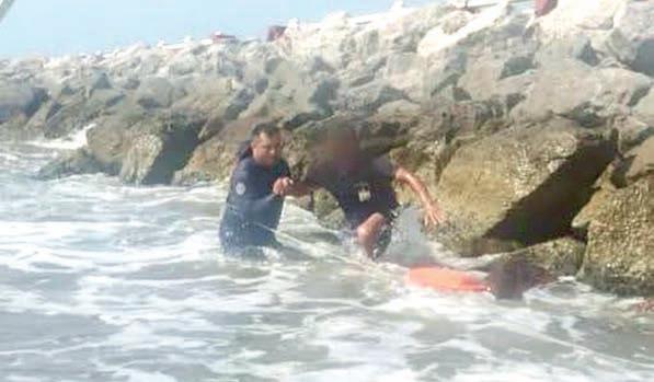 Estatal realizaron un operativo de rescate en las escolleras de Coatzacoalcos, logrando salvar a una persona que había quedado atrapada entre las rocas.