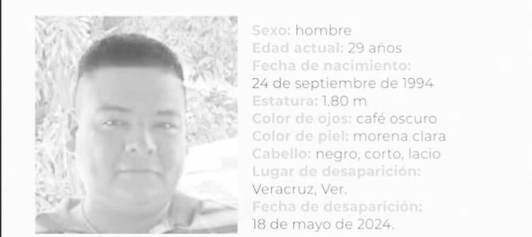 La ficha 24/SB 0790U-24ZC reporta la desaparición de Antonio Lobato Alvarado, de 29 años de edad, con quien se perdió el contacto el pasado 18 de mayo de 2024 en Veracruz, Veracruz.