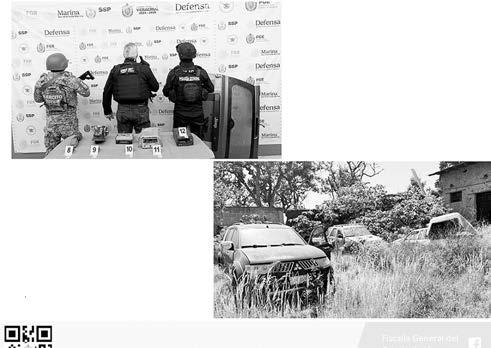 En el lugar se logró el aseguramiento de diversos vehículos con números de serie y de identificación alterados, entre los cuales se encuentra uno que cuenta con reporte de haber participado en un ilícito y otro con reporte de robo y recuperación. Además, se aseguraron una redila para camioneta, una caja seca sin números identificativos, así como partes de vehículos presuntamente desmantelados.