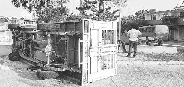 Al llegar a la altura del San Pablo, fue donde aparentemente al operador le ganó el peso que llevaba consigo la unidad y se fue sobre su costado derecho, por lo que luego de volcar también colisionó con un taxi.