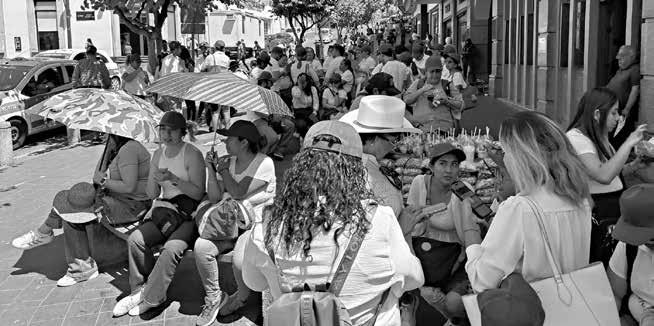 Las altas temperaturas provocaron que los pobladores hicieran uso de sombrillas o paraguas, y la constante hidratación.