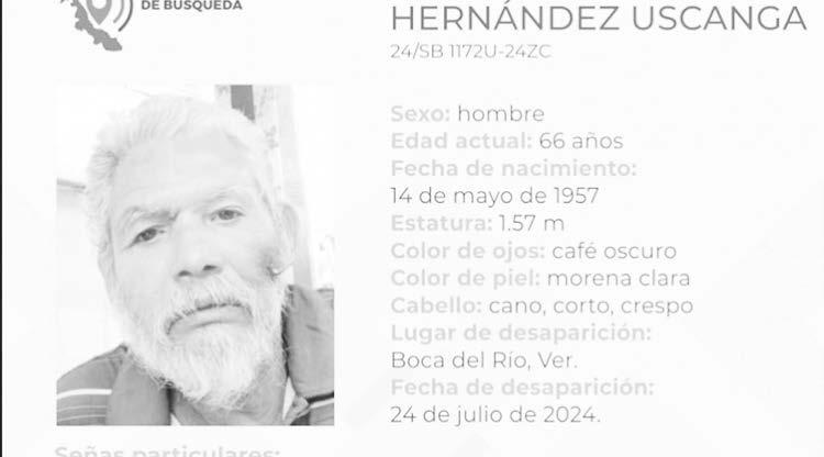 Uscanga, de 66 años de edad, con quien se perdió el contacto el pasado 24 de julio de 2024 en Boca del Río, Veracruz.