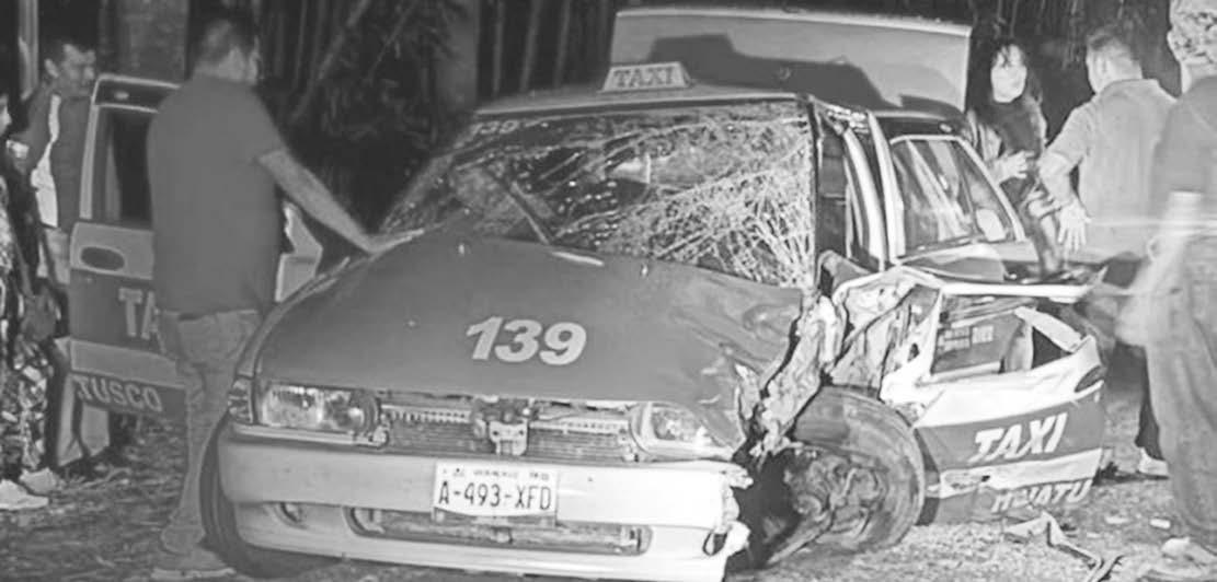 ves sobre el tramo carretero Ejido Mata Obscura- Los Fresnos, justo a la altura de la Barranca del Mirador, en los límites de Totutla con Tenampa. En el encontronazo participó un taxi de Huatusco marca Nissan Tsuru Sedán de color blanco con rojo, con número económico 139 y placas de circulación: A493XFD del Estado de Veracruz, así como un automóvil particular marca Audi A3 Sedán de color champagne, debido a que uno de los conductores invadió el carril contrario para rebasar.