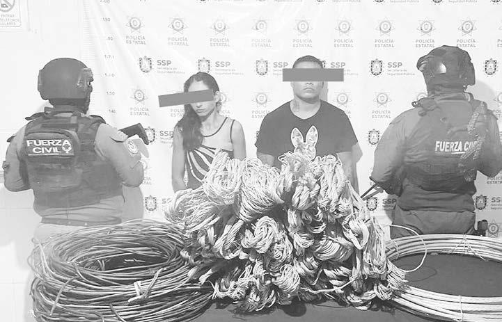 El hombre y la mujer fueron capturados mediante un operativo implementado por elementos de seguridad en donde participaron elementos de la Guardia Nacional y de la Secretaría de la Defensa Nacional quienes en flagrancia detuvieron a la pareja con 73 rollos de cable eléctrico, uno de estos de 50 metros de largo.
