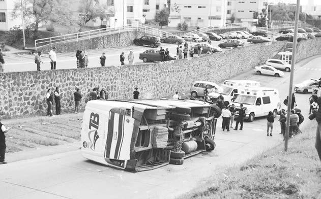 Fue en la avenida Los Álamos del citado fraccionamiento, donde el conductor del autobús perdió el control y se subió al camellón originando que la unidad con número económico 52 y placas A-29087-X que cubre la ruta Campo de Tiro, Trancas, Plaza Américas, Pradera, Agua Santa 1 y 2 así como Hernández Castillo, volcara sobre la calle.