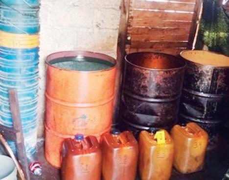 En el lugar, los agentes federales aseguraron tres mil litros de hidrocarburo que se encontraban en dos contenedores de plástico, seis tambos y cuatro garrafas; además, una bomba de agua eléctrica conectada a una manguera de plástico, tres moto -