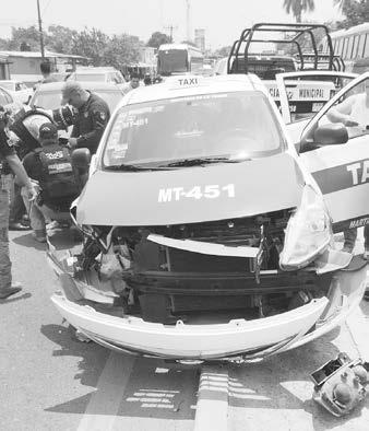 Una unidad de taxi y un automóvil particular se vieron involucrados en un accidente automovilístico sobre la carretera federal número 129, en el tramo del Libramiento de Martínez, a la altura de la calle Niños Héroes de la colonia Cuauhtémoc.