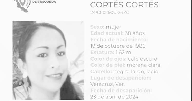 La ficha 24/CI 0260U-24ZC reporta la desaparición de Laura Cortés Cortés, de 38 años de edad, con quien se perdió contacto el pasado 23 de abril de 2024 en Veracruz, Veracruz.