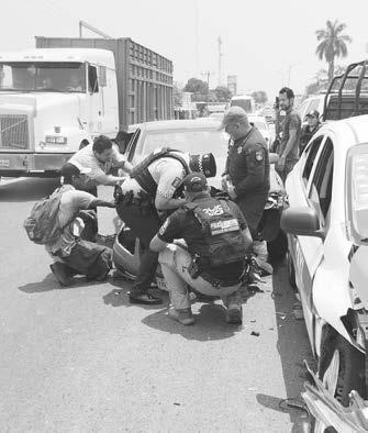 paramédicos del Escuadrón Nacional de Rescate y Cruz Roja, quienes, después de brindar los servicios prehospitalarios, llevaron a la joven lesionada al Hospital Regional para que recibiera una mejor atención médica.