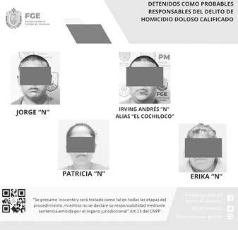 La Fiscalía General del Estado (FGE) informó que se trata de Jorge “N”, Irving Andrés “N” alias “El Cochiloco”, Patricia “N” y Erika “N”, quienes supuestamente participaron en los hechos mencionados.