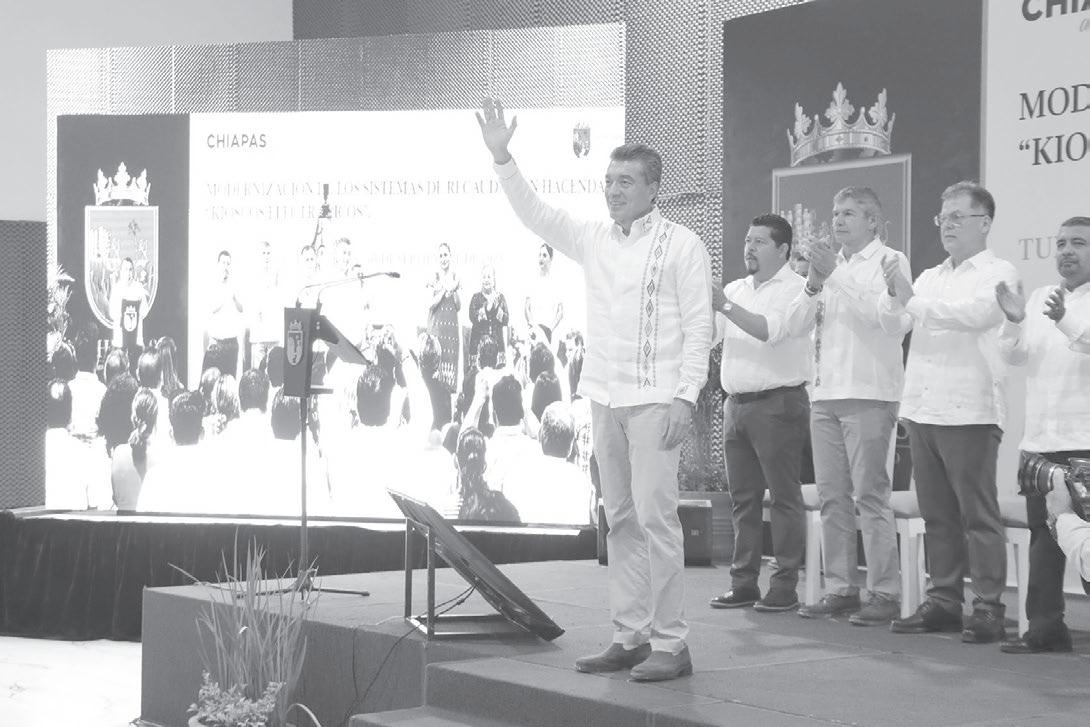 Te k´alal la yich´ jachel ta ach´ubtesel te sistema yun stsobel tak´in (hasendaria) sbiil “Kioskos Electrónikoetik”, te ajwalil Rutilio Escandón Cadenas la yal te tulan sk´olal te ya sk´an yich´ lekubtesel ta teknolojía, ta swenta slekubtesel te binta ut´il ya yich´ tsobel te tak´in, sok ja´xan tulan te jich maba wokol ya xchajpa te junetik administratibo yun te jlumaltik, jich bit´il stojel derecho sok te sk´anel junetik.