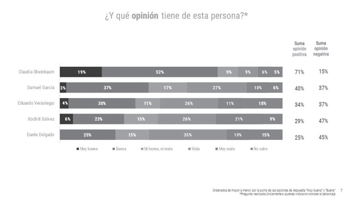 Claudia Sheinbaum oy ta primer lugar; Xóchitl Gálvez, oy ta segundo lugar; ta tercer lugar oy Samuel García; xchi'uk oy ta xchanibal lugar ti independiente Eduardo Verastegui