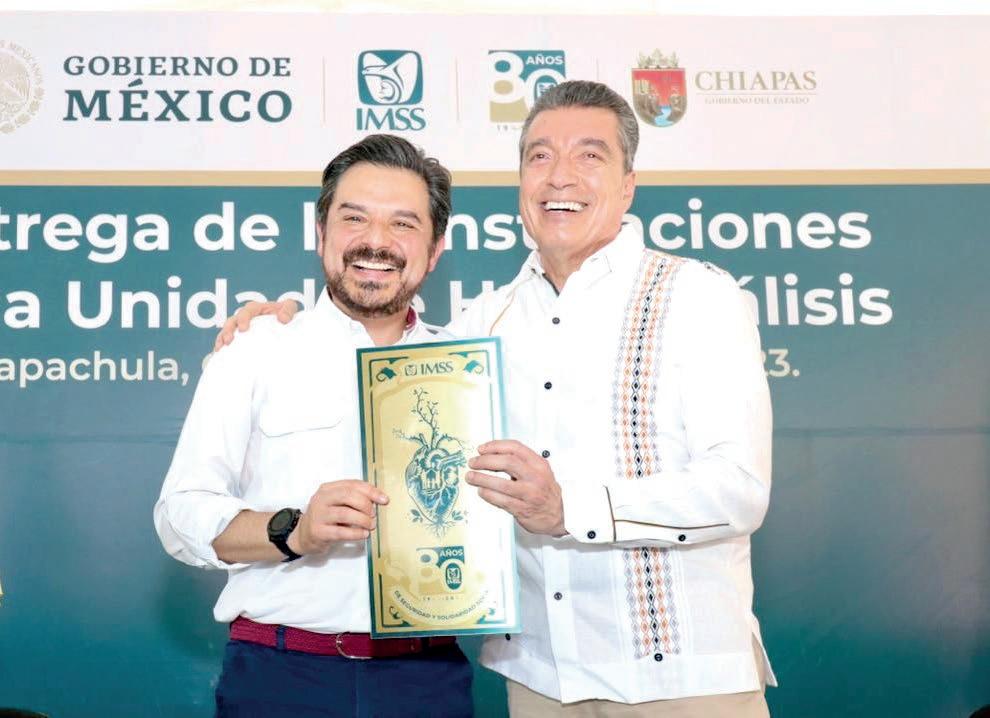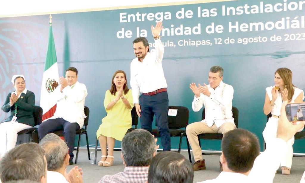 Al inaugurar la Unidad de Hemodiálisis del IMSS en Tapachula, el gobernador de Chiapas, Rutilio Escandón Cadenas, reconoció a Zoé Robledo por cumplir con la instrucción del presidente de la República, Andrés Manuel López Obrador, de recuperar y dar vida al Seguro Social.