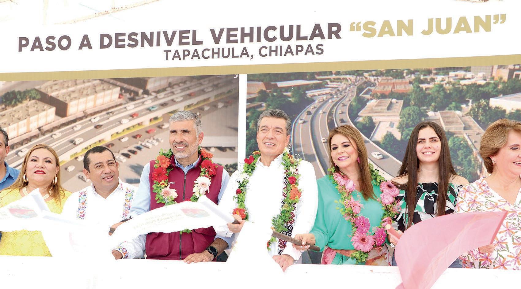En su gira de trabajo por Tapachula, el gobernador Rutilio Escandón Cadenas colocó la primera piedra del Paso a Desnivel Vehicular San Juan, el cual favorecerá la movilidad tanto de automovilistas como de peatones, y mejorará la imagen urbana, la seguridad y el desarrollo de este municipio.