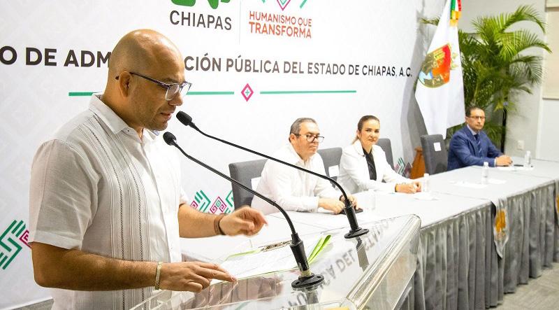 subrayó en esta Nueva ERA los escenarios sociales, políticos, económicos y culturales, locales e internacionales, interpelan cada vez más la mejor formación profesional de las y los servidores del pueblo para proponer, desarrollar y evaluar los impactos de las nuevas políticas en los tres órganos de gobierno. “Desde la Subsecretaría de Planeación Educativa nos congratulamos por este tipo de ejercicios formativos. Atestiguamosemocionadosque el Instituto de Administración Pública del Estado de Chiapas entregue títulos en: Doctorado en Administración Pública, Doctorado en Educación, Maestría en Educación y Maestría en Administración Pública y Políticas Públicas”, puntualizó.