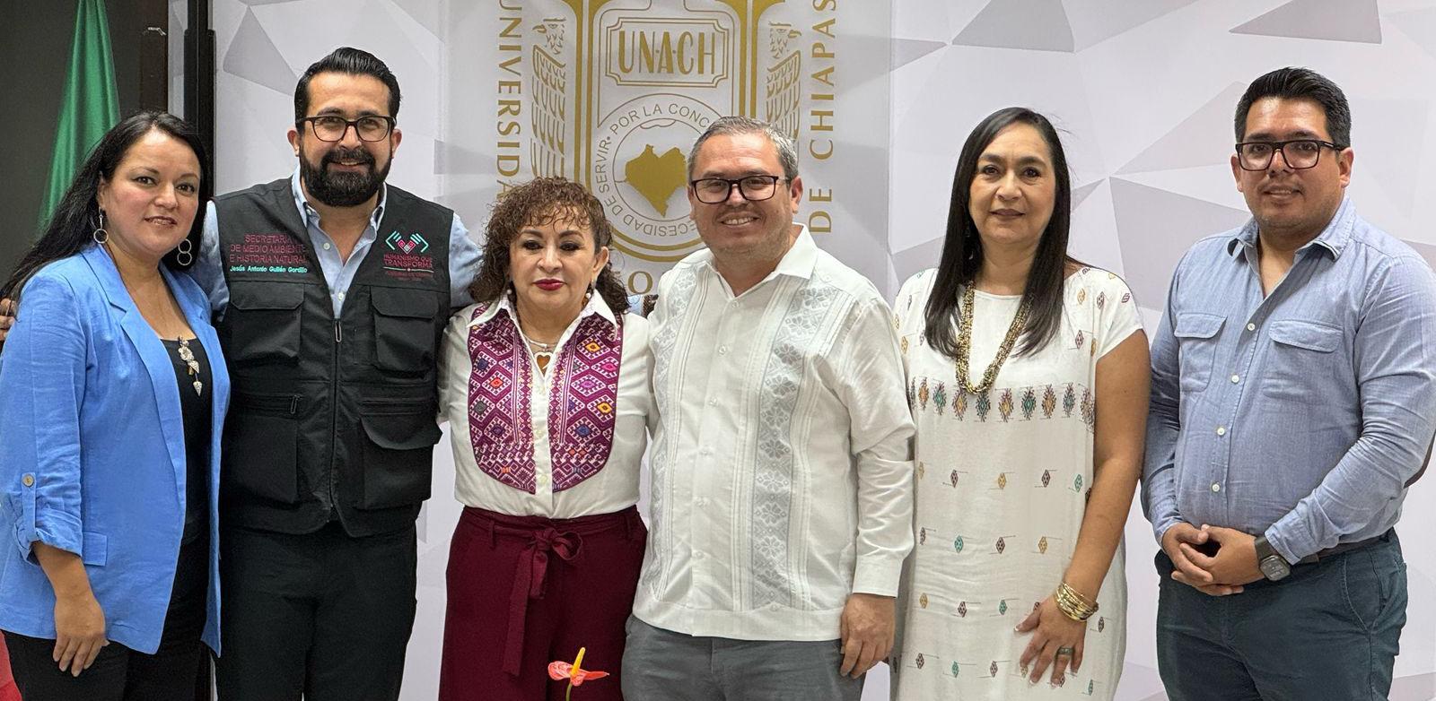 Con el objetivo de formar una juventud consciente, comprometida y participativa en acciones que contribuyan al cuidado del medio ambiente, la Secretaría de Medio Ambiente e Historia Natural (Semahn) y la Universidad Autónoma de Chiapas (Unach), firmaron un convenio de colaboración para capacitar a la comunidad escolar sobre temas ambientales. El convenio forma parte de la línea de acción “Educación ambiental para la comunidad escolar en la Nueva ERA”, de la estrategia “Barum” y fue firmado por Malena Torres Abarca, titular de la Semahn y Oswaldo Chacón Rojas, rector de la Unach.