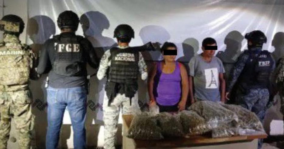 La Fiscalía General del Estado, la Secretaría de Seguridad del Pueblo, la Secretaría de la Defensa Nacional, la Secretaría de Marina y la Guardia Nacional, detuvieron en flagrancia a René “N” y Brenda “N”, de nacionalidad guatemalteca, como presuntos responsables del delito contra la salud.