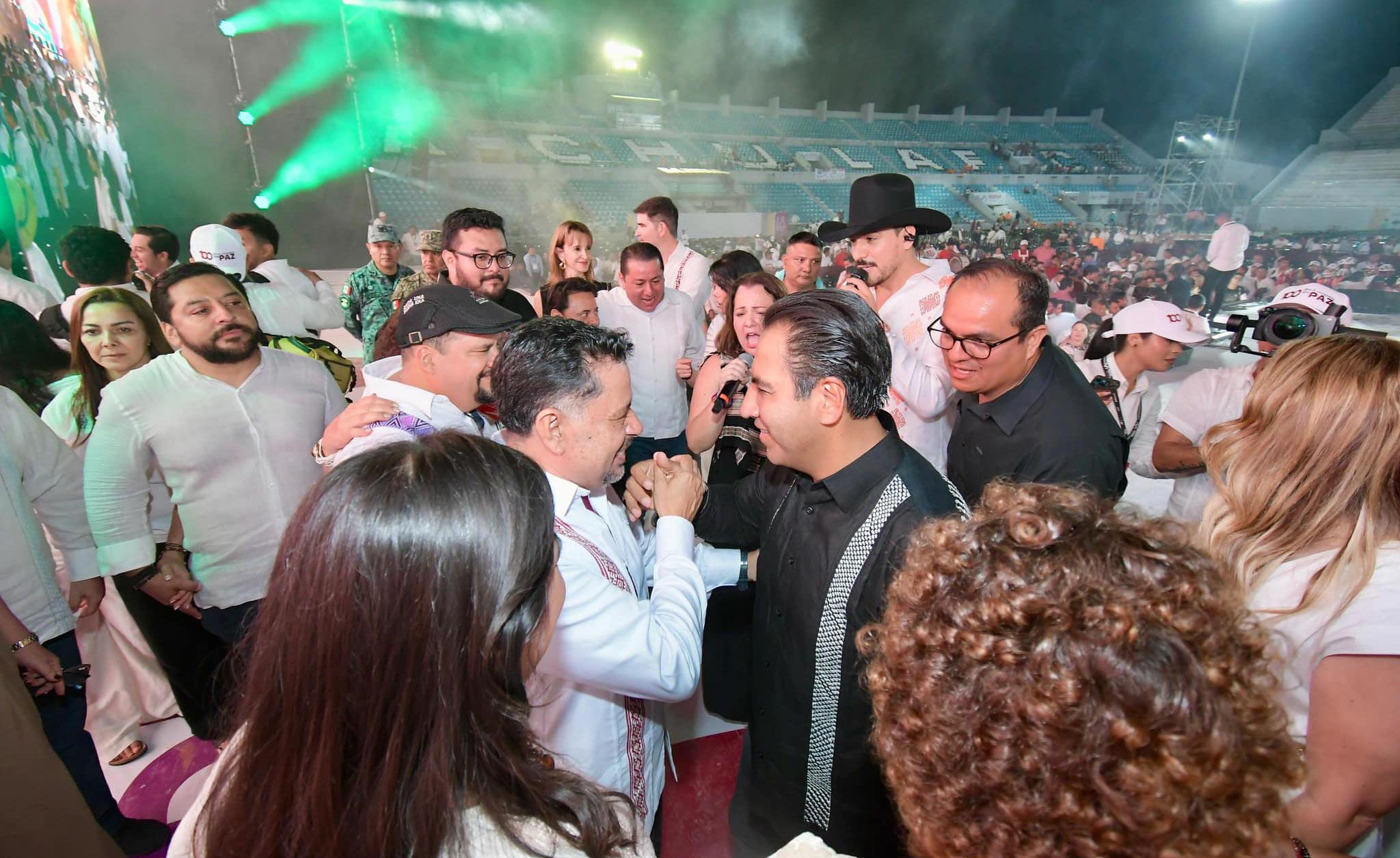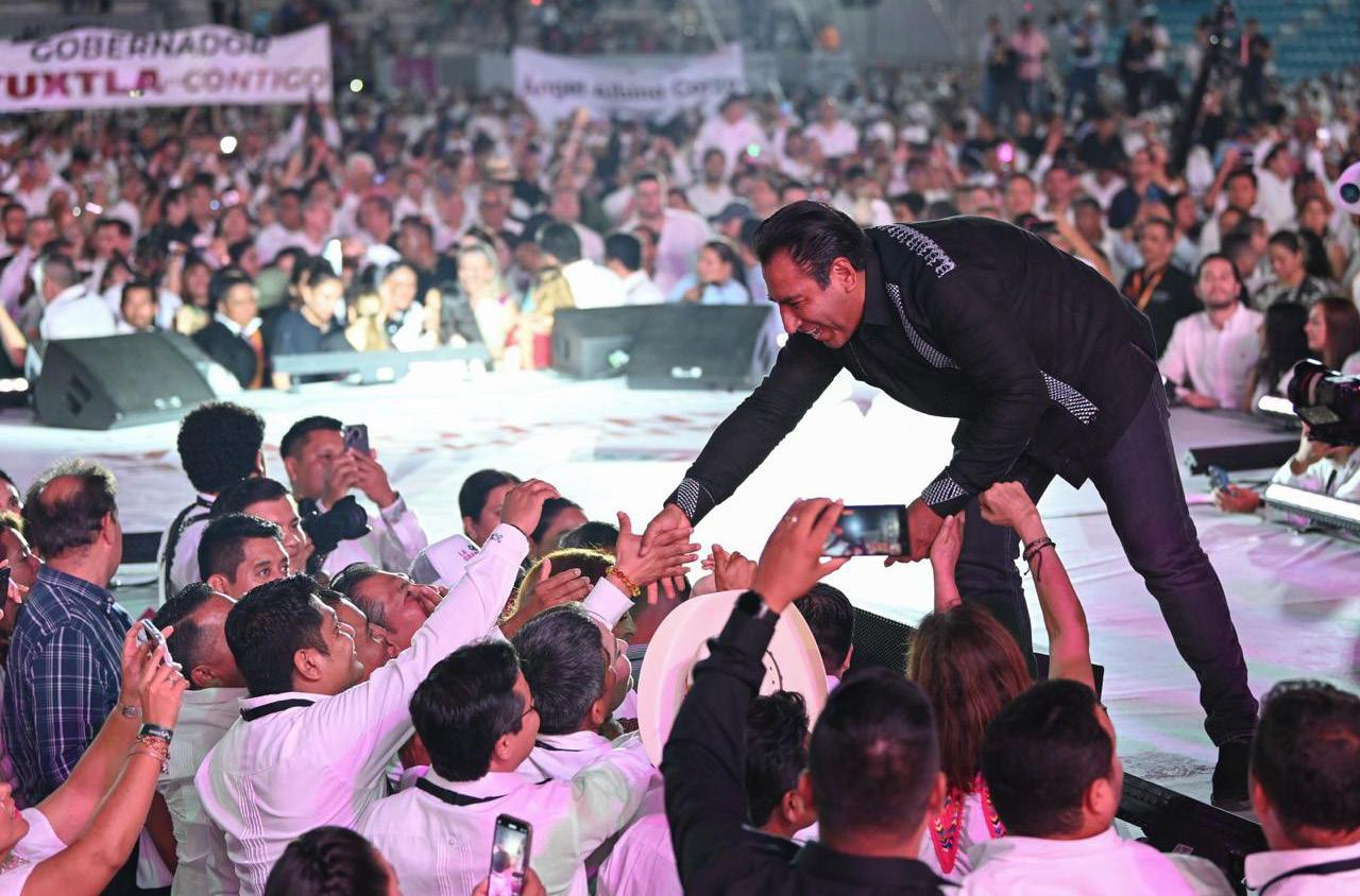 El Estadio Olímpico de Tapachula se convirtió en el epicentro de una noche inolvidable, donde el gobernador Eduardo Ramírez Aguilar presentó los logros alcanzados en los 100 primeros días de su administración. Un ambiente festivo envolvía el lugar: mensajes de agradecimiento destacaban entre la multitud y miles de voces se unían en una sola exclamación: “¡Gobernador, gobernador!”