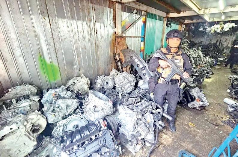 Se aseguraron dos armas de fuego cortas, 17 cartuchos útiles, dos calaveras, dos placas de circulación, una tapa de cajuela, 26 motores de diversos vehículos, todos ellos con reporte de robo activo, además de 550 toneladas de autopartes.