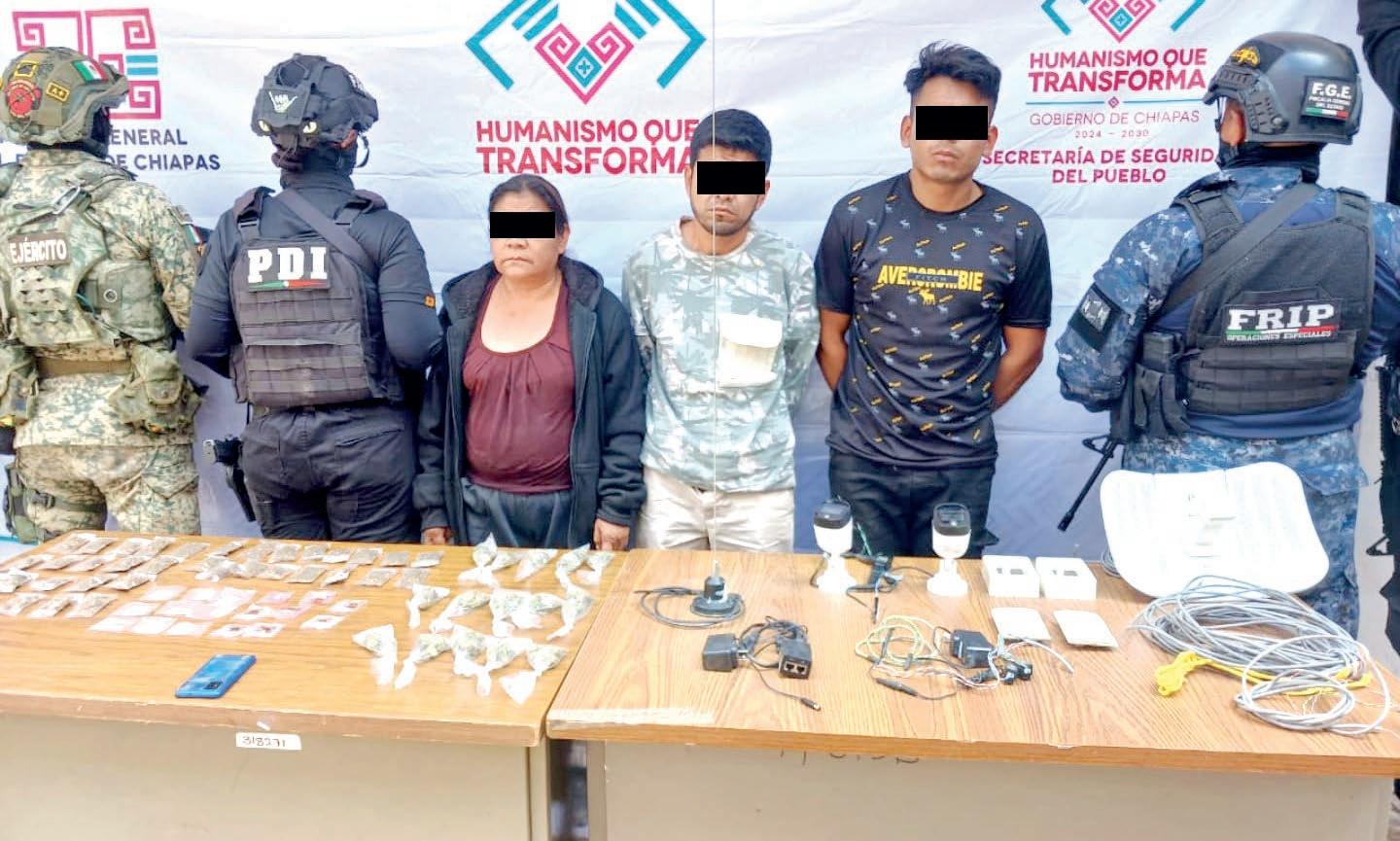 En el marco del Operativo de los 100 días, los elementos del orden se presentaron en la colonia Terrero Copalar, localizando las cámaras y desmantelando el equipo de grabación; además, realizaron la detención de Evelia “N”, Pedro “N” y Jhonatan “N”.