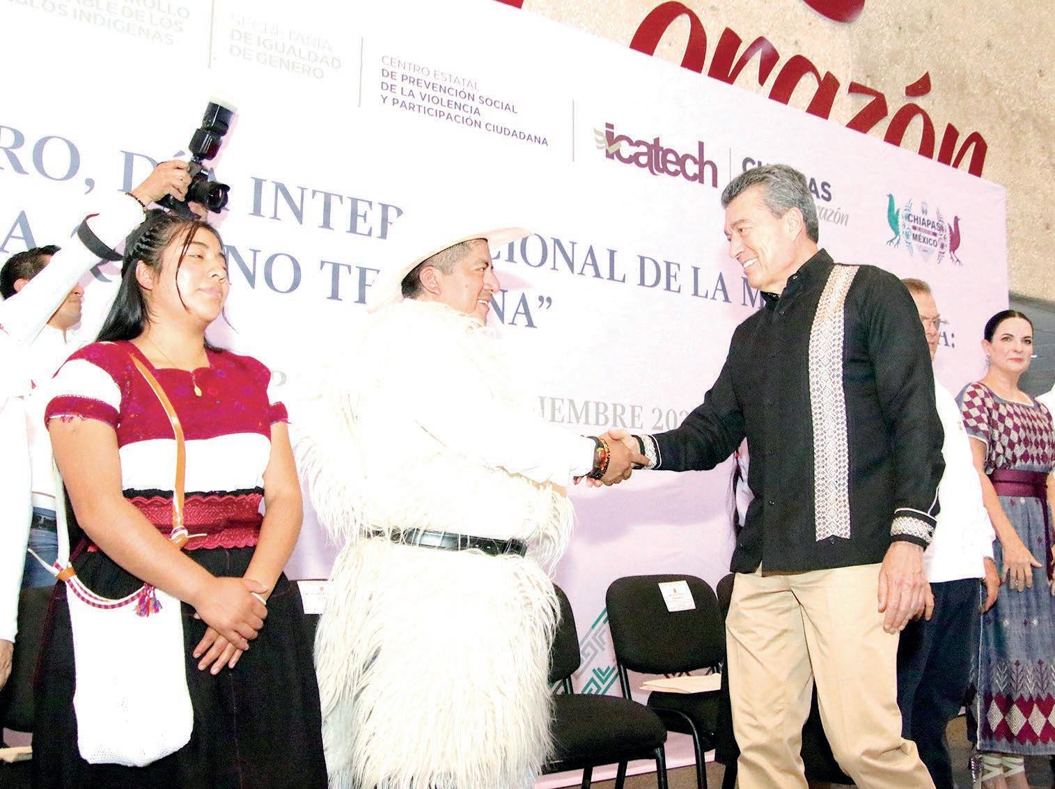 El gobernador señaló que Chiapas está avanzando en materia de igualdad de género y se atiende con urgencia a los pueblos originarios. PÁG. 24