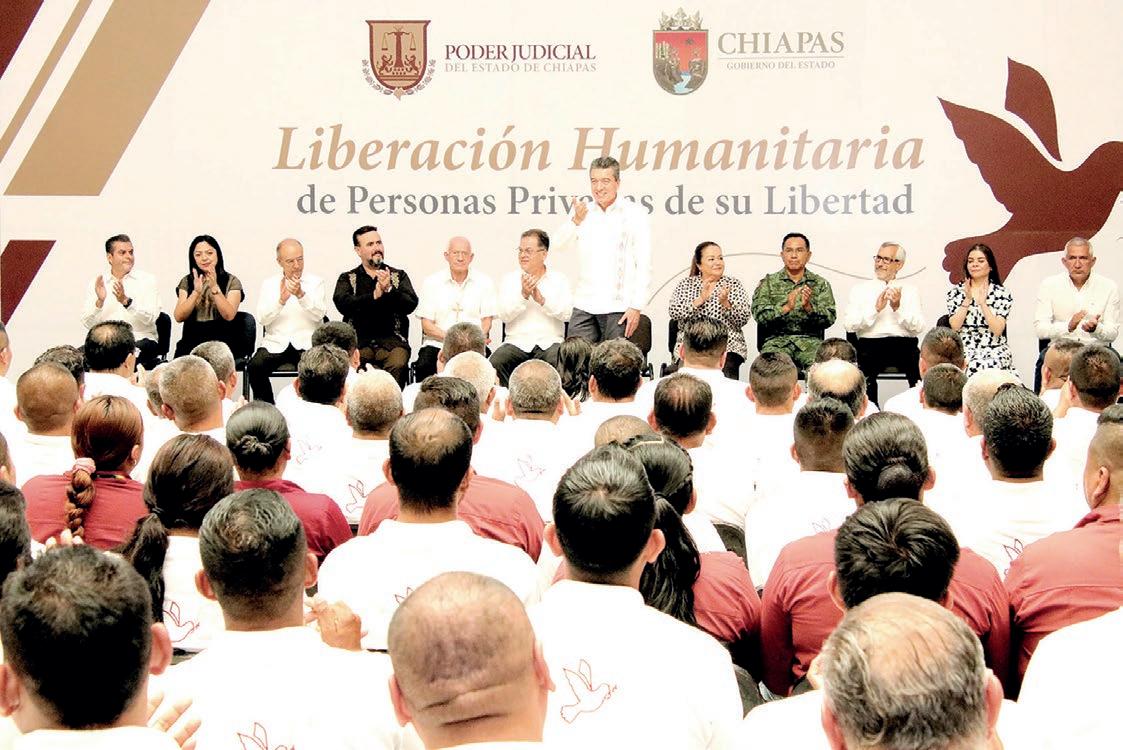El gobernador Rutilio Escandón Cadenas encabezó el acto de liberación por razones humanitarias de 510 personas que se encontraban privadas de su libertad en distintos penales de la entidad, donde resaltó que desde que se establecieron estas acciones de justicia, en Chiapas han liberado a cinco mil 416 hombres y mujeres, sin que a la fecha se haya registrado alguna reincidencia por parte de las y los beneficiados.