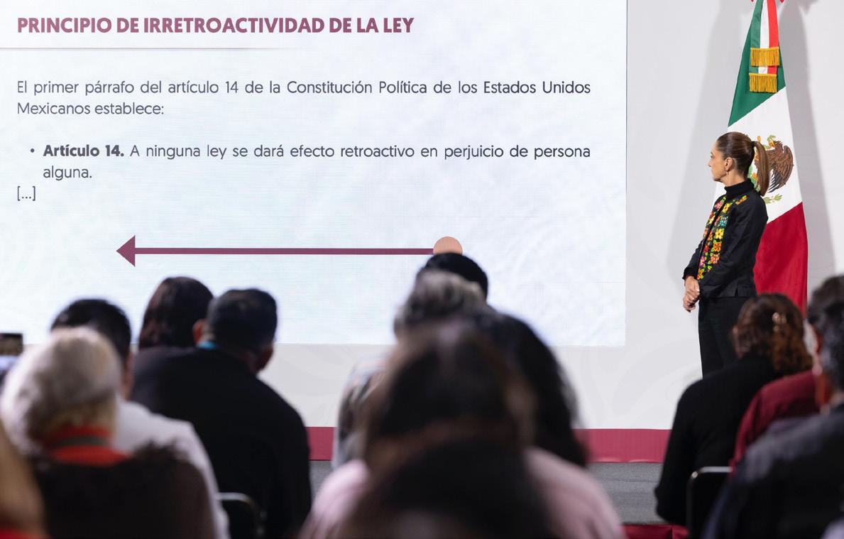 El Gobierno de México no impulsa ni avala leyes ni actos contrarios a la Constitución, que en su Artículo 14 establece que no debe haber retroactividad en las leyes