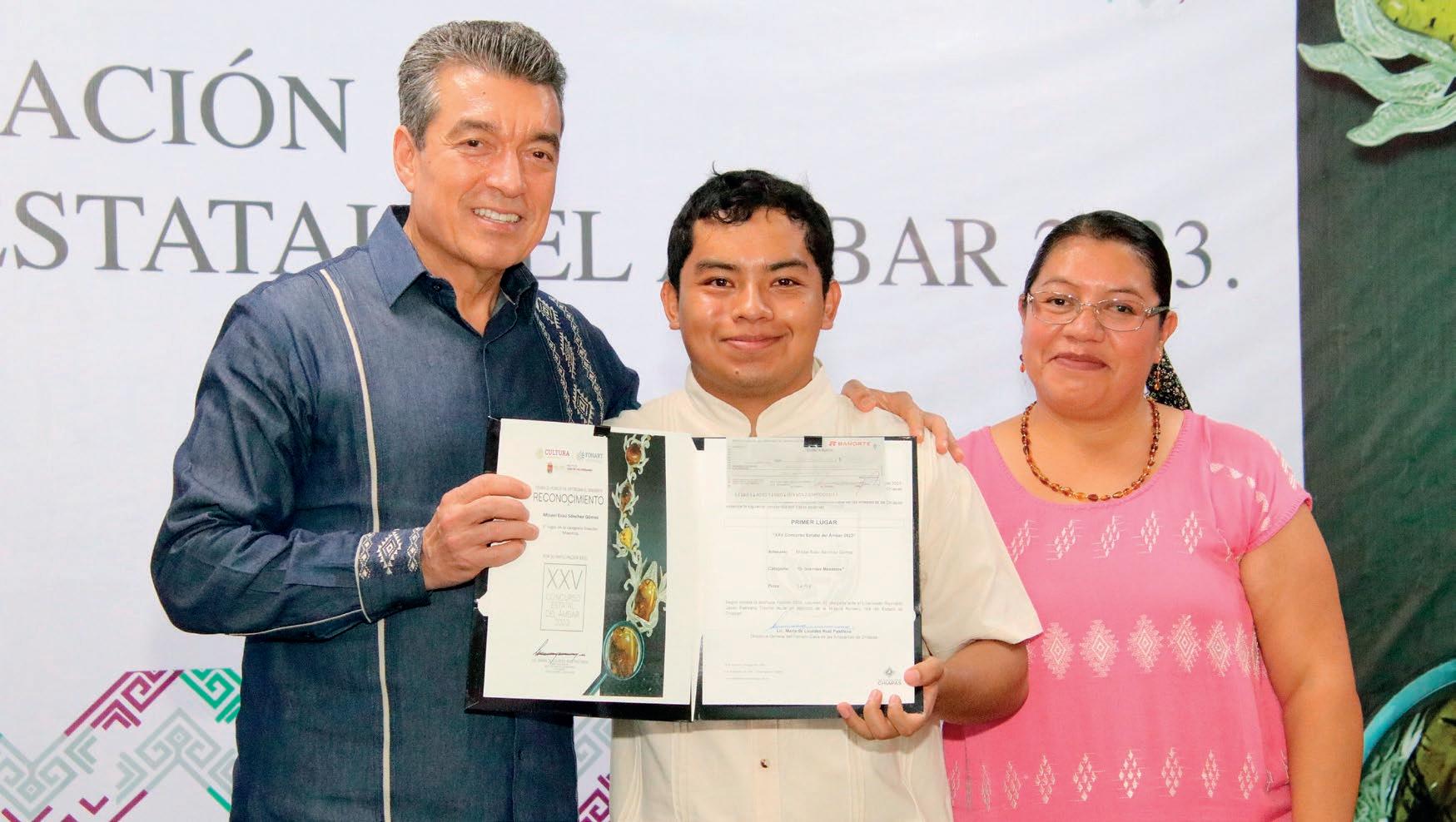 En tanto, el artesano ganador de la categoría Grandes Maestros, Misael Esaú Sánchez Suárez, originario del municipio de Simojovel, expresó su gratitud a los gobiernos Estatal y Federal por impulsar iniciativas que, además de enaltecer el conocimiento, las habilidades, la sabiduría y el esfuerzo de los artesanos chiapanecos, dan la oportunidad de preservar la riqueza artística y cultural en las presentes y futuras generaciones.