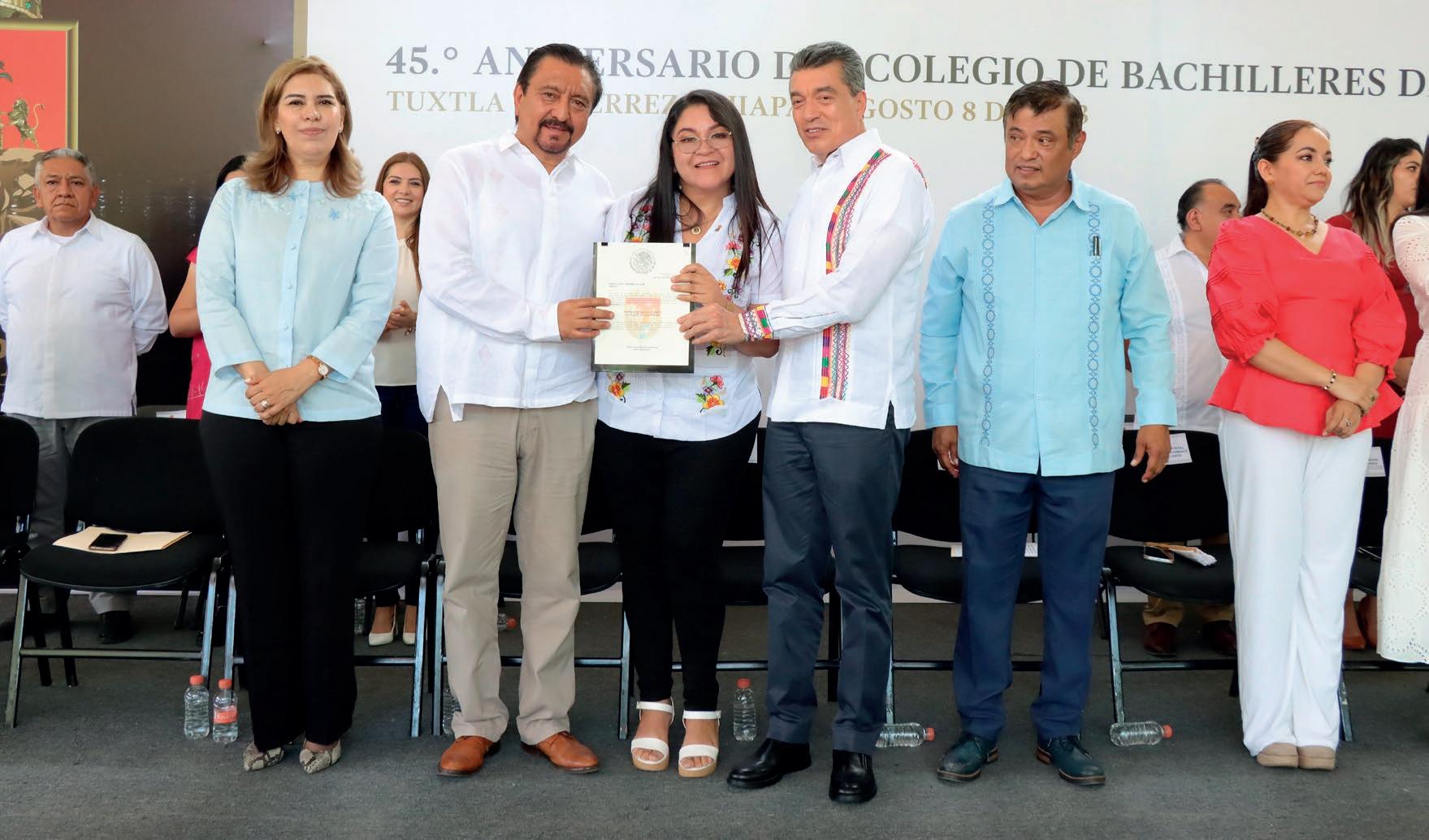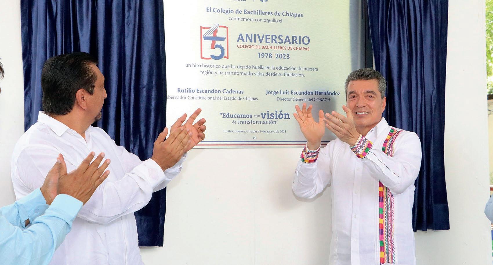 En el marco de la conmemoración del 45 Aniversario del Colegio de Bachilleres de Chiapas (Cobach), el gobernador Rutilio Escandón