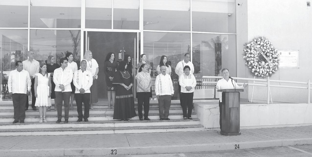 Guillermo Ramos Pérez, llevó a cabo como cada inicio de mes, el acto cívico de Honores a la Bandera, acuerpado por la familia judicial. PÁG. 2