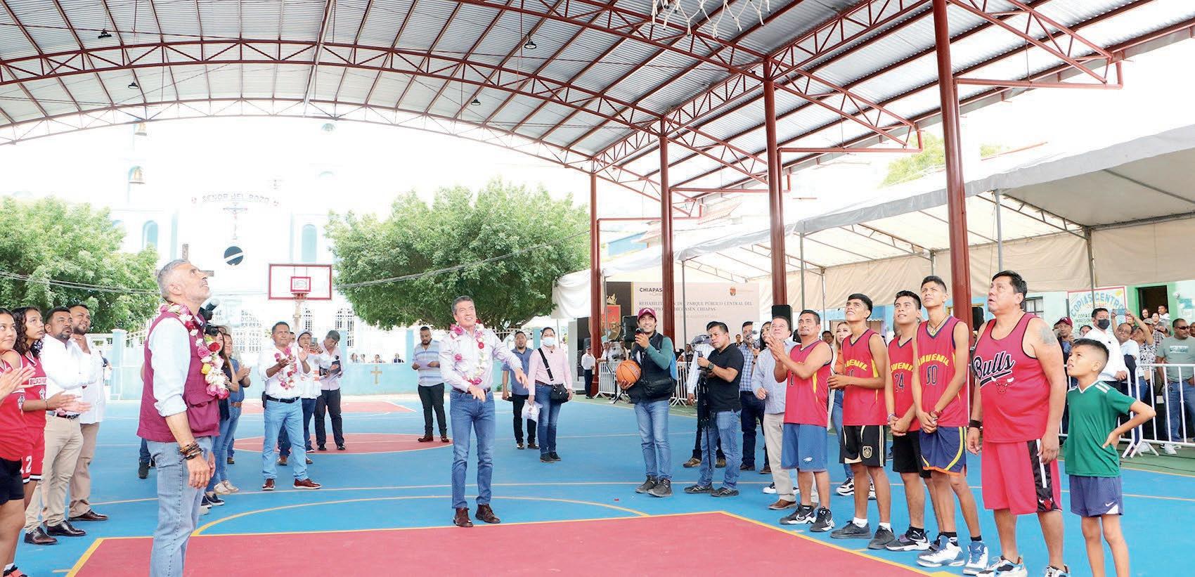 Al inaugurar la rehabilitación y el mejoramiento integral de la Unidad Deportiva del municipio de Ixtacomitán, el gobernador Rutilio Escandón Cadenas destacó que es satisfactorio constatar que el presupuesto se invierte en la construcción de este tipo de infraestructura, porque además de recuperar espacios públicos, se contribuye al fortalecimiento de la salud y el tejido social, al bienestar y la convivencia pacífica de los pueblos.