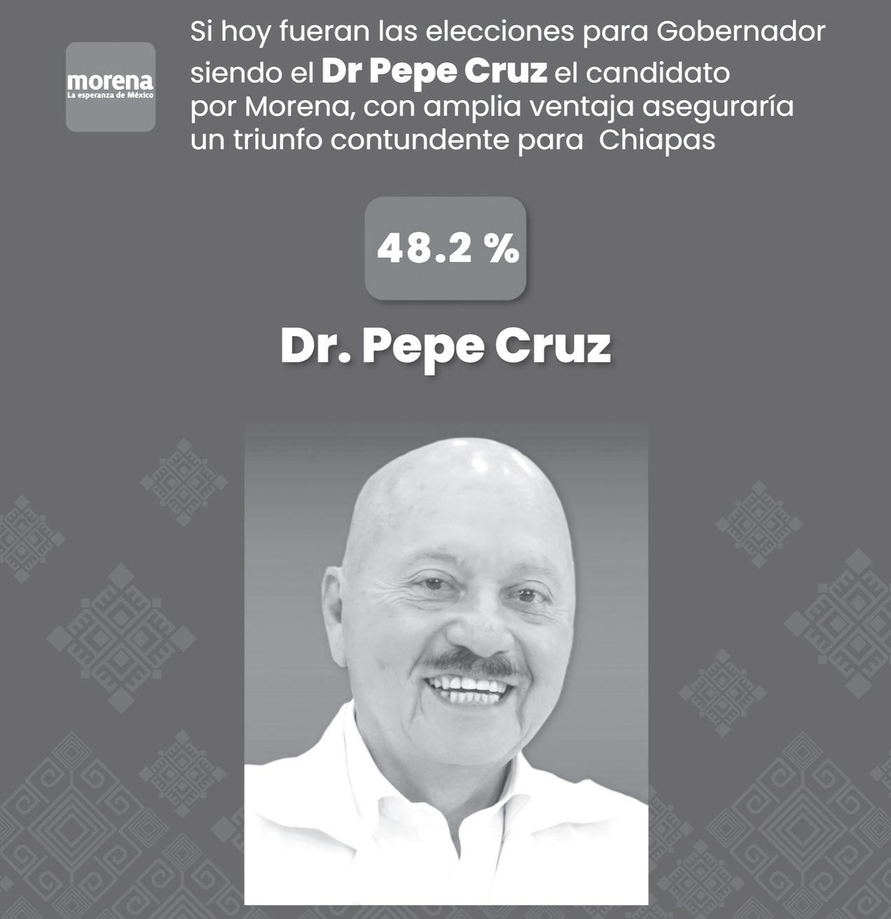 te encuesta elaborada por la empresa Massive Caller, Morena y el doctor Pepe Cruz siguen perfilándose como la fórmula ganadora en Chiapas rumbo a las elecciones del próximo año.