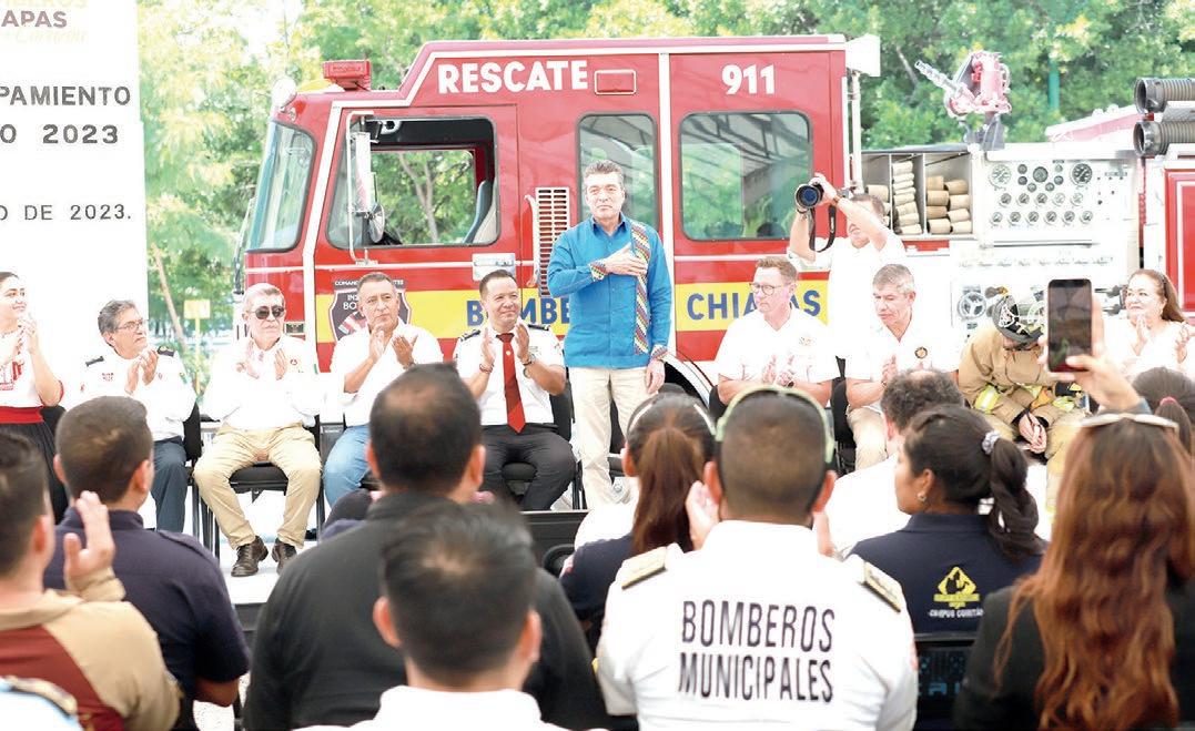 del Gobierno del Estado, como nunca las bomberas y los bomberos tienen todas las herramientas para proteger al pueblo de Chiapas, al tiempo de refrendar el compromiso de seguir haciendo causa común a favor de la protección civil.