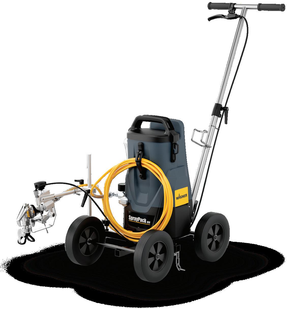 • Grounding chain and stable four‑wheel frame for safe, controlled spraying with solvent‑based materials. KIT INCLUDES: