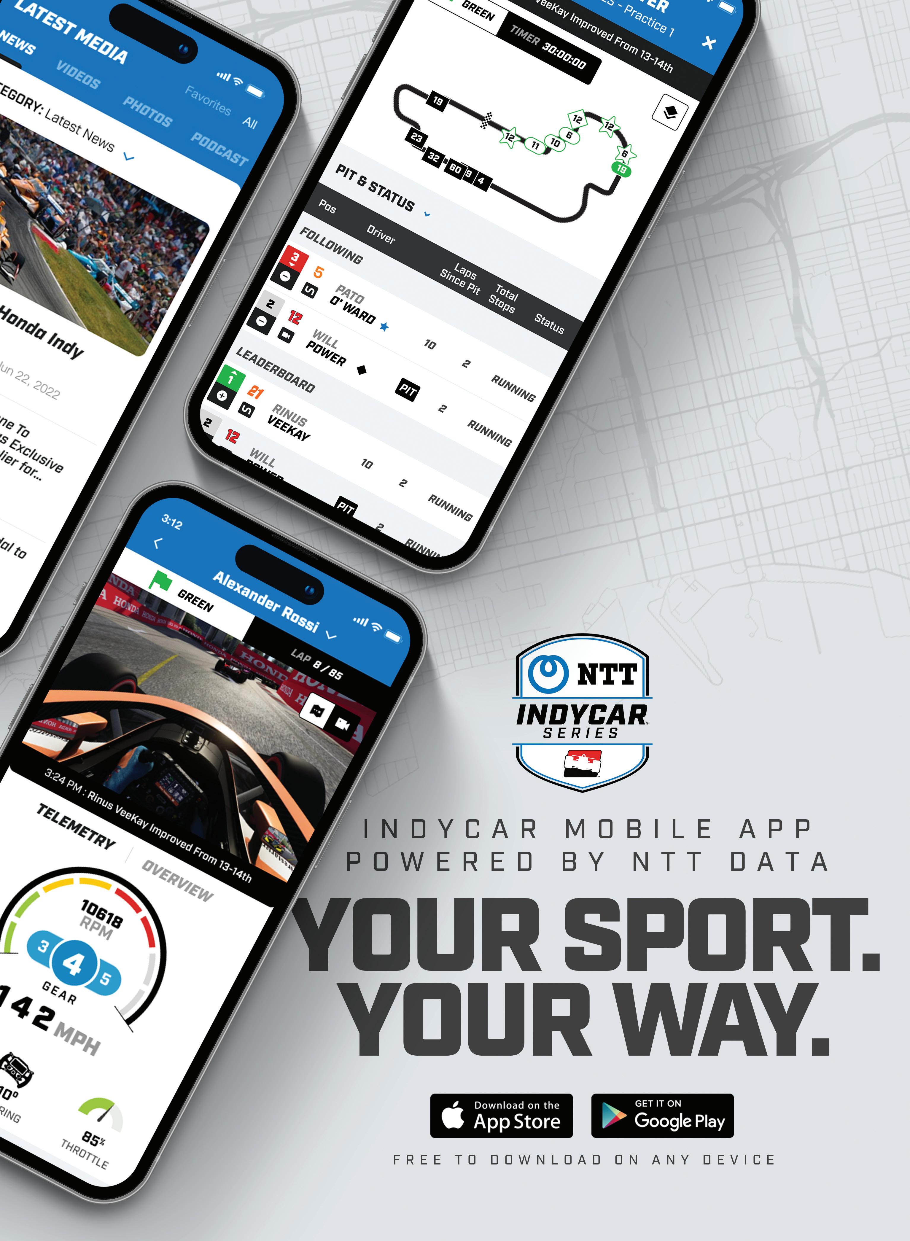 While in this beautiful location, we invite you to download the INDYCAR App powered by NTT DATA on your smartphone to get behind-the-scenes driver features, live timing and scoring, in-car cameras and more information to help you follow the action. Also, follow the NTT INDYCAR SERIES online at INDYCAR. com, on Facebook, Twitter and TikTok (@INDYCAR), and keep track of future INDYCAR SERIES stars racing in INDY NXT by Firestone at indynxt.com or on Facebook, Twitter and TikTok (@indynxt)