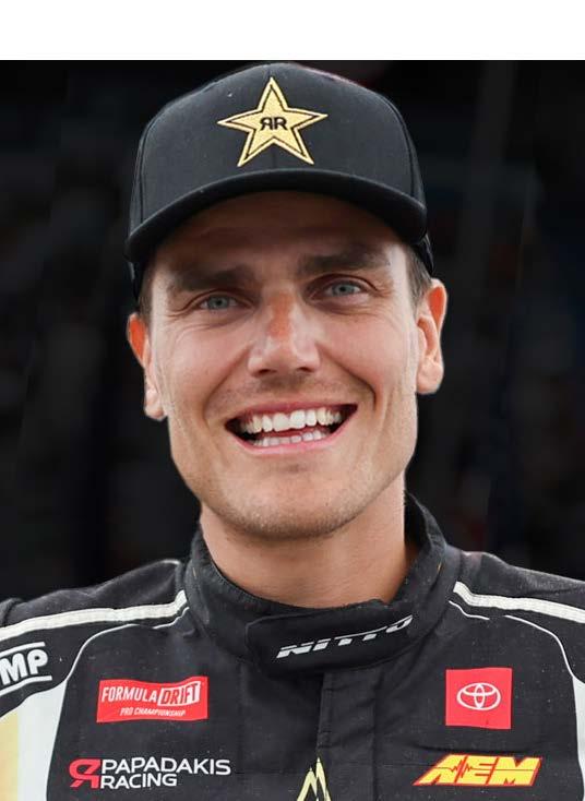 Ryan “Hampshaa” Tuerck is a leading social influencer and a championship contender. A regular podium finisher, he drives the Papadakis Racing built Rain-X / Nitto Tire Toyota GR Corolla Hatchback. The driver’s down-home charm, commitment to the sport’s grassroots, and talent in front of the camera have brought him a social fanbase of over a million followers. Notable projects include the Formula Supra, and his eponymous YouTube series Tuerck’d. Tuerck started his motorsport career on two wheels, racing AMA motocross through his early teens. He developed a passion for drifting at age 16 while learning to control rear-wheel drive cars on the snowy winter roads near his family’s New England home. In addition to campaigning a full Formula Drift season, he maintains a full demo and appearance calendar, counting Gridlife, the Goodwood Festival of Speed, Winter Jam, and Pro Bro Down among some of his favorite stops in recent years.