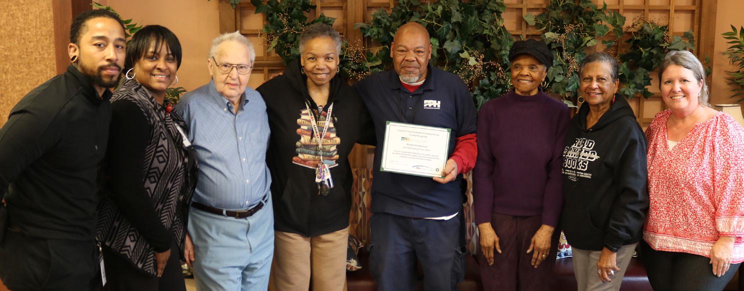 Andre Anderson with PPH Leadership and some of the residents who recogized him.