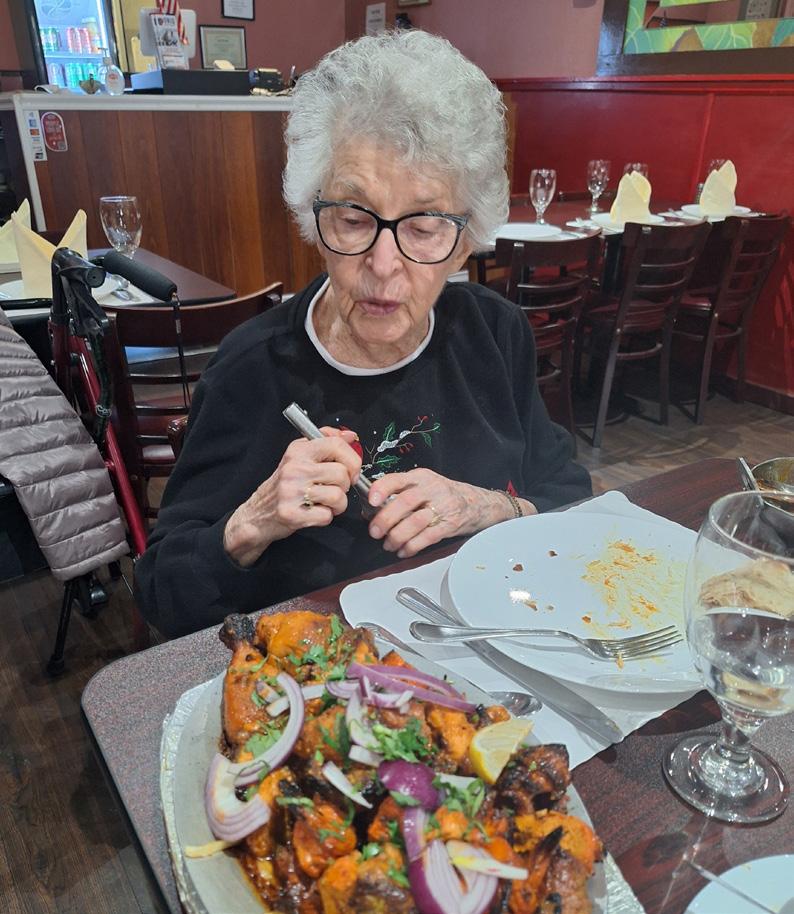 Alpha resident Loretta Sucharski gets ready to dig into a tasty meal at Babari Nepali & Indian Cuisine in nearby Huntingdon Valley, PA.