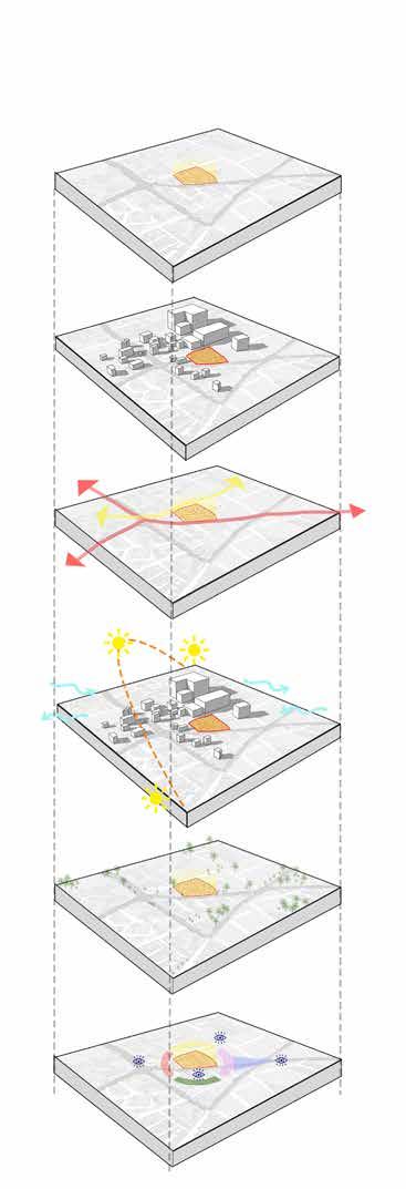 Location Traffic node Commercial axis High-rise Connection point Intersection Solar orientation Wind orientation Public parks Adjacent channel Nature+Artifacts Urban “facades” “Humble”height Public surroundings Circulation Sun paths Form 1 2 3 4 Landscape Views