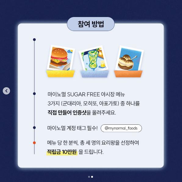 -<It’s My Normal> SNS 이벤트 노멀리안이 My Normal 제품을�사용하는�이유와�주요�제품 사용�상황�및�에피소드에�대해�묻는�참여형 SNS 이벤트를 �달에�한�번씩�진행합니다. 이�이벤트를�통해�소비자는 자신의 My Normal 제품�사용에�대해�생각할�수�있는�시간을 가질�수�있습니다. 예를�들어�다이어트, 식단관리, 건강을 챙겨야�하는�개인적인�상황, 당뇨, 피부�문제, 가치관�등의 다양한�사용�이유와�나만의�레시피, 보관�방법, 선물�등과�같은 사용�방법이�있습니다. 이러한�이벤트�참여자의�다양한 에피소드를�통해 SNS 이용�소비자에게�다양한�제품�사용 상황에�대해�알릴�수�있습니다.