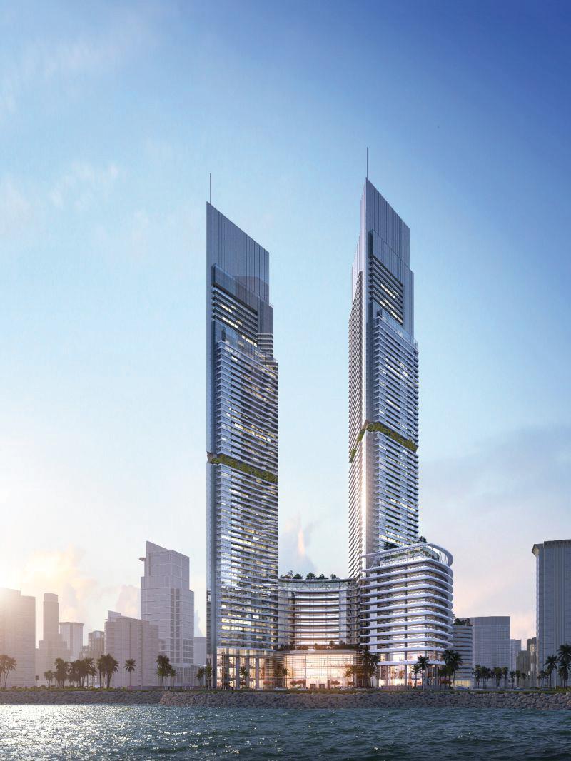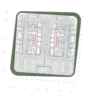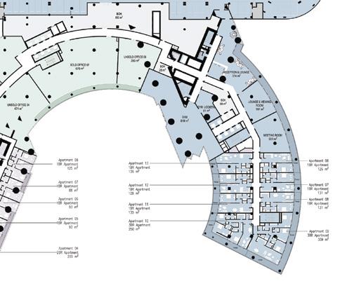 The project has been partially constructed and Asmo aims to complete the construction and development of the project. Sumou Towers consists of two towers, the southern tower 71 floors and the northern 62 floors. The part of the project we are working on is highlighted in yellow.