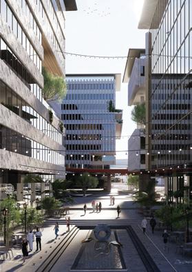 The site lacks a building that would embrace the commercial area and provide an identity for it . To enhance the commercial area and provide a distinct identity, the addition of a signature building could greatly contribute. This building would serve as a focal point, attracting visitors, and creating a sense of place.