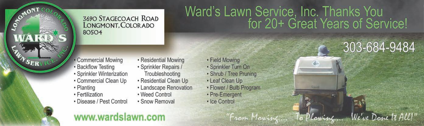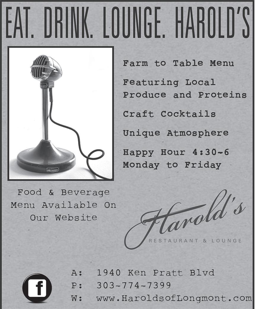 Buy. Sell. Trade. Thank YouLongmontfor yoursupport. 17 greatyears! TURNYOURUNWANTEDGOLD ANDSILVERORYOUR OLDJEWELRYBOX INTO ATREASUREHUNT! 385 Main St.Longmont (303)774.9661 •www.ChamberlainCoins.com Find Us On Facebookwww.facebook.com/chamberlaincoins Come in andget our Free bidnumber LongmontonKenPratt 645KenPrattBlvd. •Longmont,CO80501 303-774-1441phone •303-774-1551fax Mon -Sat:11am-10pm •Sun:11am-8pm LongmontonMountainView 2130MountainView Ave. •Longmont,CO80501 303-702-1111phone •303-702-4444fax Mon -Fri:7am-9pm •Sat -Sun:9am-9pm *iphone &androidapp DownloadSnarf’s appget 1/2offyourfirstmobileorder *willreceivepromocodewithin48hours VOTEDBEST SANDWICHOFLONGMONT! THA N K YOU! www.eatsnarf.com 32 SUNDAY,MAY26,2013 WWW.TIMESCALL.COM LONGMONTTIMES-CALL READERSCHOICE