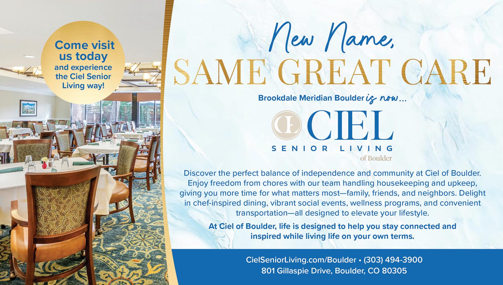 Ciel Senior Living of Boulder 801 Gillaspie Drive, Boulder, (303) 494-3900 cielseniorliving.com/boulder
