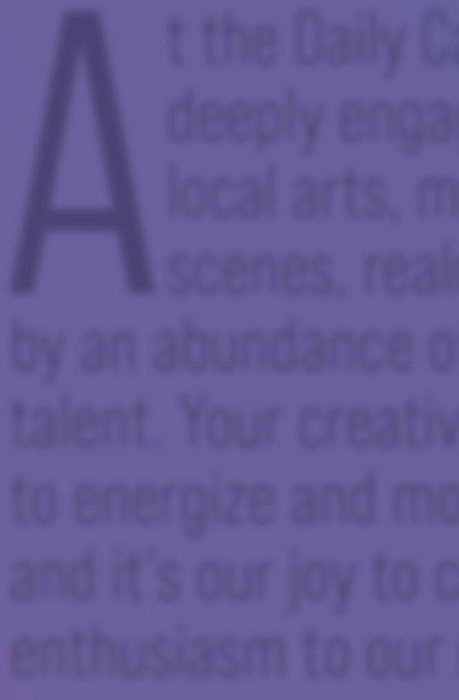 At the Daily Camera, we’re deeply engaged in the local arts, music and fi lm scenes, realms inhabited by an abundance of local artistic talent. Your creativity continues to energize and motivate us and it’s our joy to convey this enthusiasm to our readers. We are your direct line to reaching local audiences. Contact us to discuss opportunities such as Business Spotlight , Friday Magazine - online and in print, and our eNewsletters , which are experiencing exponential growth. Let us help you be the star of your own show.