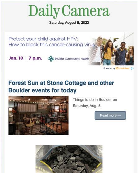 5-6:45pm OPENING NIGHT RECEPTION Longmont Museum (see p.46)