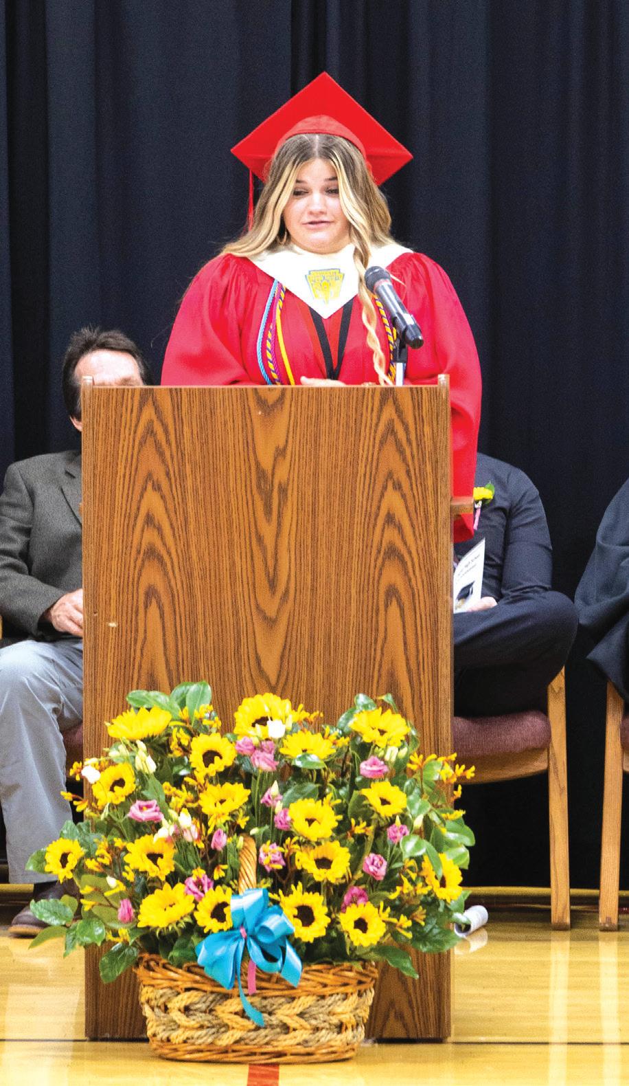 The Class of 2024 Valedictorian was Kaitlyn Tracy who stood up and gave a touching and motivational speech to her classmates. She then introduced the classes chosen speaker Brady Hull.