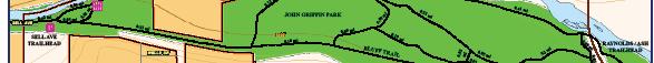 Trailheads andparkinglotsare locatedinseveral locations. TheRaynoldsTrailheadisjustoff theRaynolds Bridgebesidethe Recreation District Office andcan lead you in twodirections, west into John GriffinParkoreast towards Mackenzie Ave. From 9thStreetthe trailexpands intwo directions, east into John GriffinParkpastthe Recreation District’s RopesChallenge Course andwestto Centennial Park